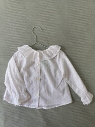 Blusa unisex de plumeti en color blanco, pero en esta ocasión con tira bordada solo al final de la manga.