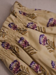 Cubrepañal UNISEX con fondo mostaza y flores grandes. Un básico para cualquier ocasión.